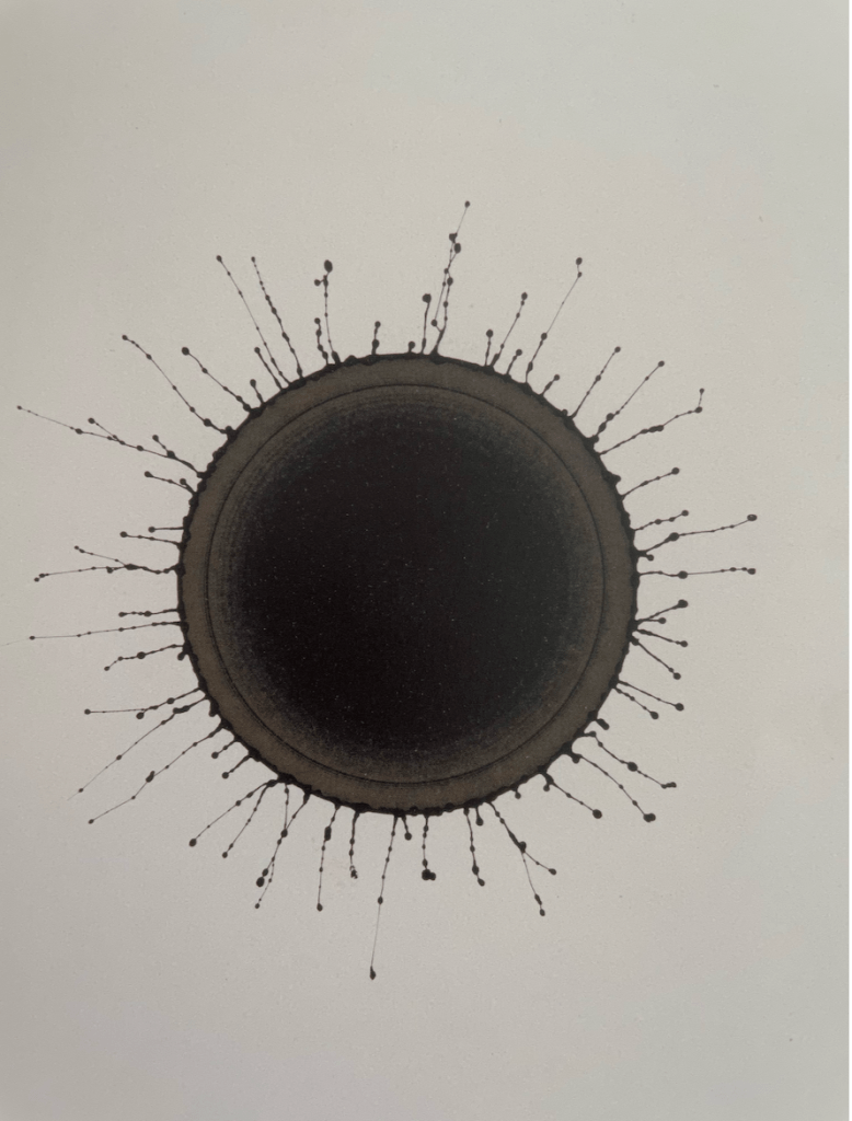 Né en 1944, l’artiste plasticien Roland Flexner est un Niçois à New-York. En quête permanente de nouveaux media comme la technique du suminagashi qu’il maîtrise depuis son passage par la Villa Kujoyama de Kyoto, Roland Flexner explore tous les éléments du hasard dans ses dessins subtilement obtenus par le souffle. Le thème des vanités ne lui est pas indifférent.